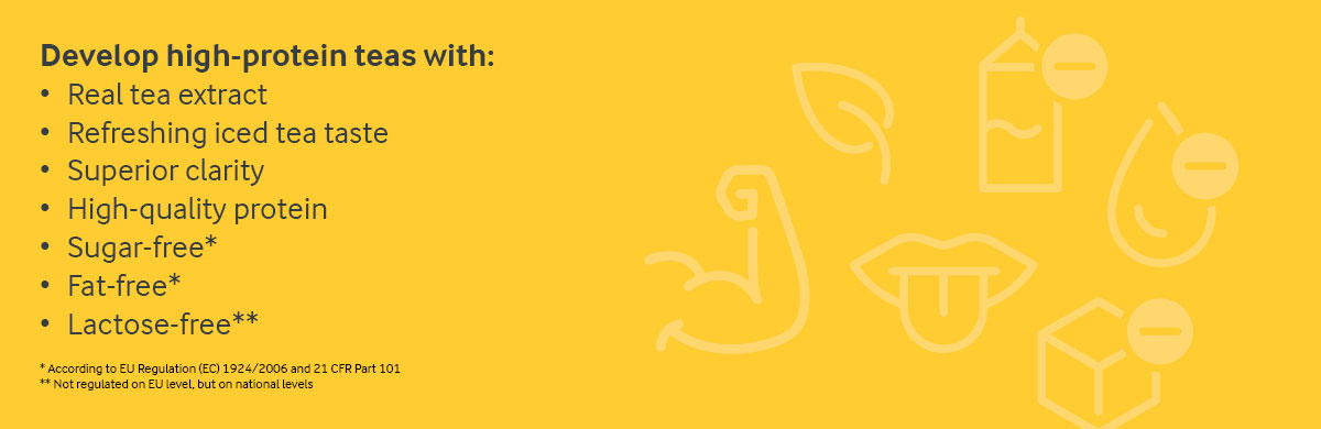 Clean labels featuring natural ingredients are top-of-mind for today’s consumers. And that applies to iced tea, too. Global market research shows that consumers favour iced teas that are natural and sugar-free, too2. This is exactly why high protein is the perfect new trend for teas. As opposed to many other ingredients, proteins do no harm in consumer minds – quite the opposite, in fact.