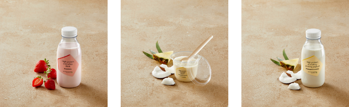 Our new concept utilises all the goodness of milk in innovative snacks made with acid whey side streams from Greek yoghurt production. Combined with our Nutrilac® whey proteins, these side streams can be quickly transformed from waste to valuable raw material. Product possibilities include a high-protein beverage, drinking yoghurt or creamy dessert for consumers to enjoy.