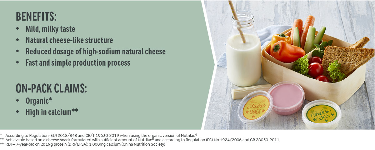 With the organic product line Nutrilac®, you can create organic, premium cheese snacks that are specially formulated for children and meet the demands of modern parents for natural dairy goodness.