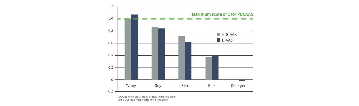 - Mathai JK, Liu Y, Stein HH. Values for digestible indispensable amino acid scores (DIAAS) for some dairy and plant proteins may better describe protein quality than values calculated using the concept for protein digestibility-corrected amino acid scores (PDCAAS). Br J Nutr. 2017;117(4):490-499. doi:10.1017/S0007114517000125. Rutherfurd SM, Fanning AC, Miller BJ, Moughan PJ. Protein Digestibility-Corrected Amino Acid Scores and Digestible Indispensable Amino Acid Scores Differentially Describe Protein Quality in Growing Male Rats. J Nutr. 2015;145(2):372-379. doi:10.3945/jn.114.195438. Bindari YR, Lærke HN, Nørgaard JV. Standardized ileal digestibility and digestible indispensable amino acid score of porcine and bovine hydrolyzates in pigs. J Sci Food Agric. 2018;98(6):2131-2137. doi:10.1002/jsfa.8697